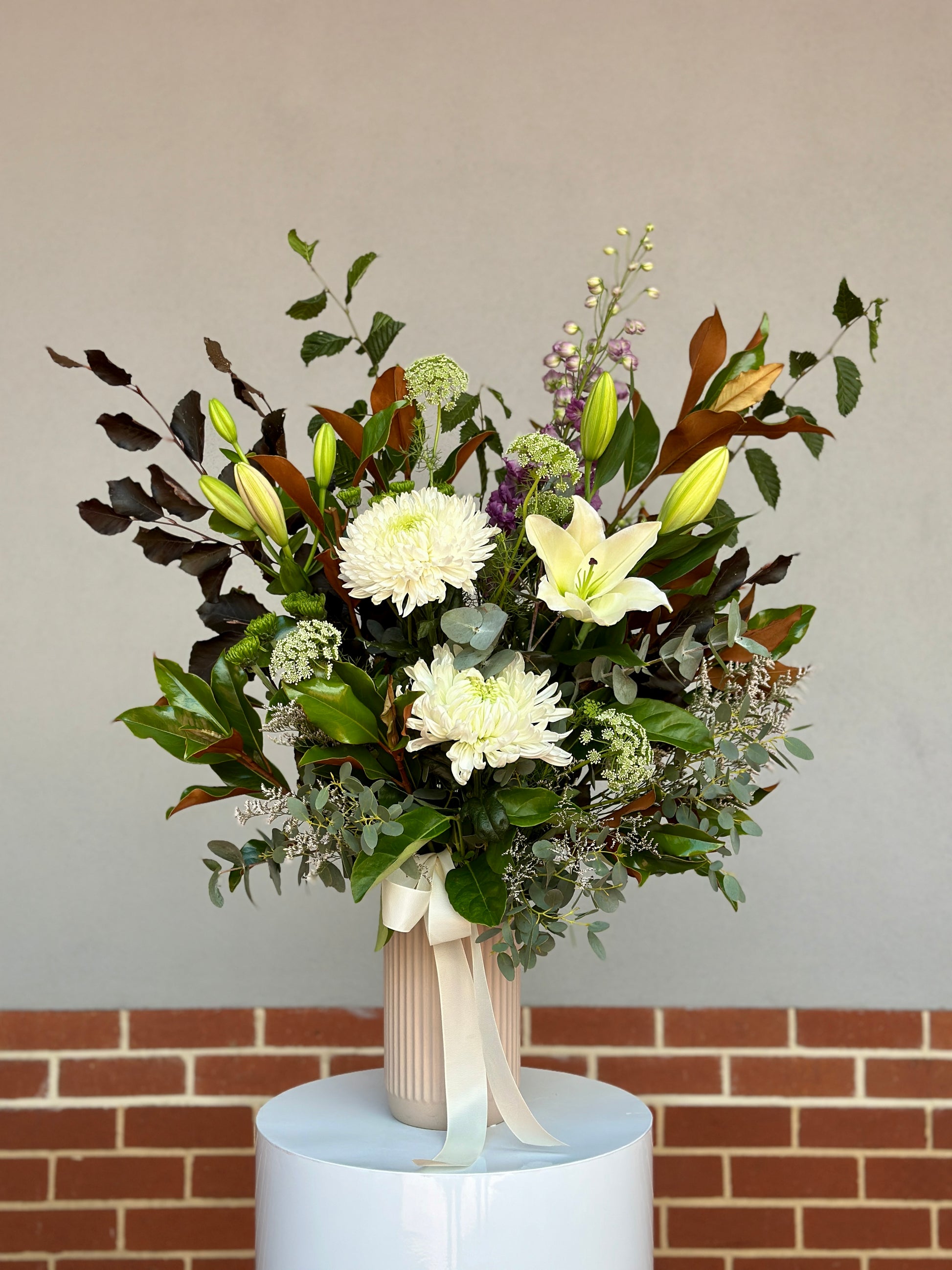 (Please note: The colour of the vase will be subject to availability. While we make every effort to fulfil your order as requested, all flowers are subject to availability. In the event that a specific flower is unavailable, we may need to substitute with a flower of equal value and similar colour to ensure your bouquet is just as beautiful. Thank you for your understanding.)